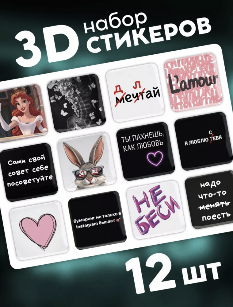 3D Стикеры — объемные наклейки для яркого декора! Добавьте стиль и оригинальность своим вещам с помощью 3D стикеров! Эти объемные наклейки создают эффект глубины и реалистичности, делая любой предмет уникальным. |
