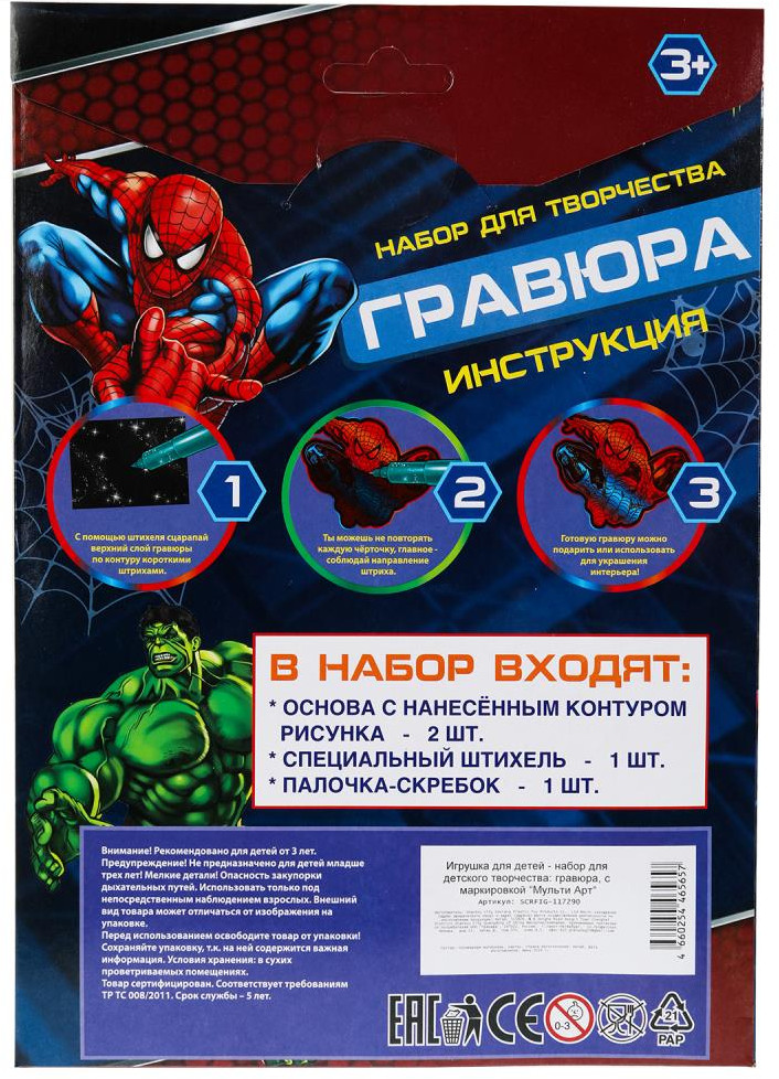 💳 Оплатить за товар можно при получении 🇰🇿 Есть бесплатная доставка по Казахстану от 1 дня 🎁 Копите бонусы с каждой покупки Набор для творчества «Фигурная гравюра. Спайдер» ТМ «Мульти Арт» — отличный подарок для ребёнка, который будет способствовать развитию его творческих способностей. С помощью данного набора юный художник сможет создать эффектные цветные картины в виде любимых персонажей на чёрном фоне. Контур рисунка уже нанесён на основу, остаётся только процарапать изображение специальным штихелем. Готовую поделку можно подарить близким или использовать для украшения интерьера. |