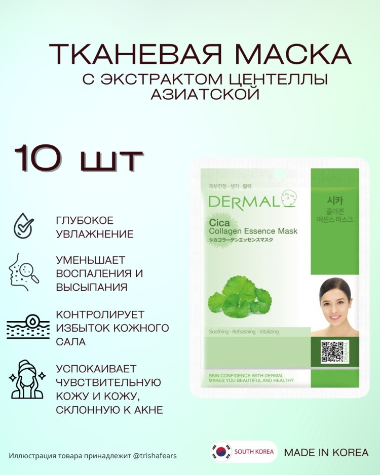 Dermal Набор масок для лица с экстрактом азиатской центеллы «Cica Collagen Essence Mask Soothing»