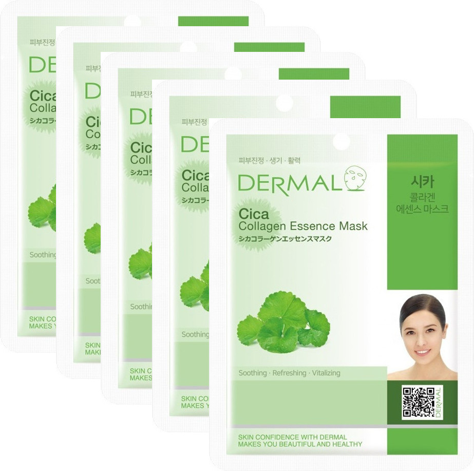 Dermal Набор масок для лица с экстрактом азиатской центеллы «Cica Collagen Essence Mask Soothing»