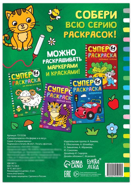 💳 Оплатить за товар можно при получении 🇰🇿 Есть бесплатная доставка по Казахстану 🎁 Копите бонусы с каждой покупки Эту супер раскраску можно раскрашивать карандашами, маркерами и красками! С крупными элементами изображений удобно работать даже малышам, которые только знакомятся с этим видом творчества. Чем полезно раскрашивание. Помогает в изучении новых форм, предметов и цветов. Воспитывает эстетический вкус. Тренирует мышцы запястья и готовит руку к письму. Развивает мелкую моторику, что благотворно влияет на речевой центр. Тренирует усидчивость и концентрацию внимания. |