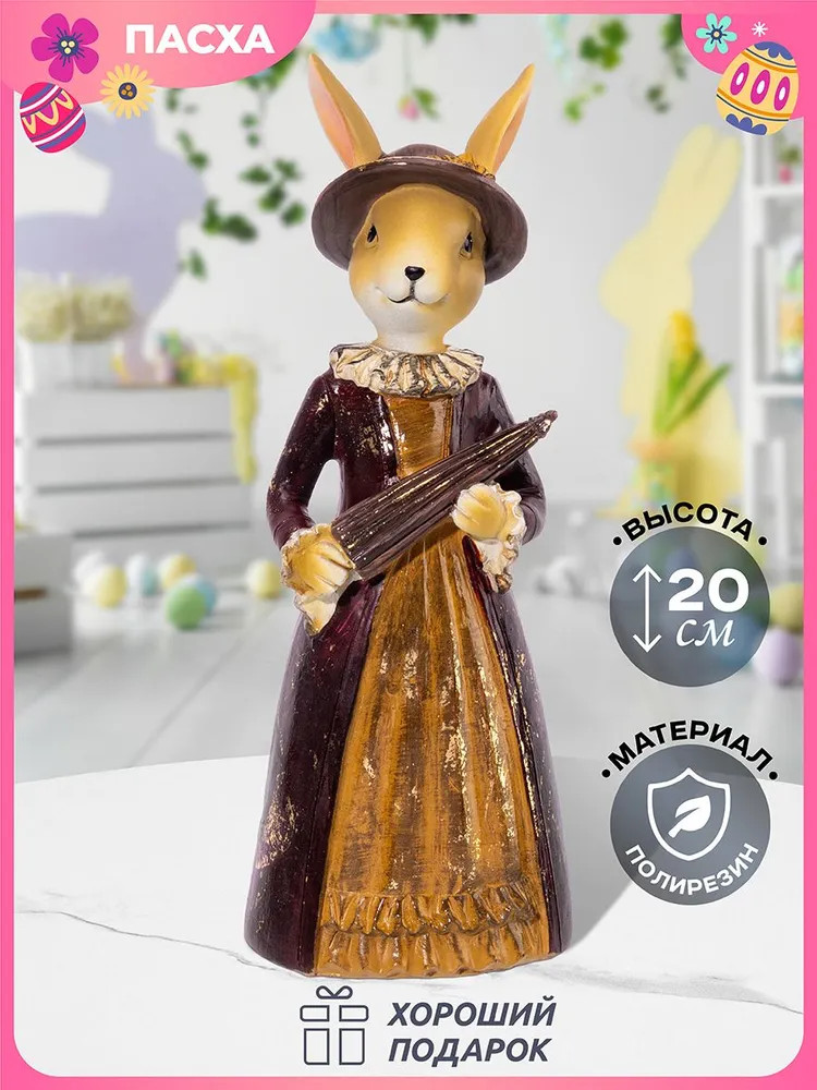Elan Gallery Фигурка декоративная «Зайка с зонтом»В данный момент этот товар отсутствует в продаже. Возможно, у нас найдется аналогичный или похожий товар здесь. Декоративная пасхальная статуэтка «Зайка с зонтом» преобразит любое помещение. Размер изделия — 7,5×6,5×20 см. Выполнена из полирезина — современного материала, который славится своей лёгкостью, устойчивостью к влаге и солнечным лучам. Он не выделяет веществ и не имеет запаха. Полирезин легко поддаётся обработке, поэтому изделия из него отличаются своей реалистичностью и проработанной детализацией. Статная зайка одета в длинное старинное платье с воротником и носит элегантную шляпку с золотистыми цветочками. В лапках она держит сложенный зонт. Одежда и уши зайки покрыты декоративной позолотой, создающей эффект старины. Светлая Пасха — один из главных праздников весны! Мы разработали коллекцию сезонных товаров для дома, которые помогут создать радостную и уютную атмосферу в квартире или на даче. Пасхальный декор преобразит домашний интерьер и поможет встретить праздник в кругу любимых. Настольная фигурка дополнит и освежит антураж любой комнаты. Разместите статуэтку на столе или полке, создайте тематическую композицию с веночками, декоративными веточками вербы или другими фигурками. Изысканная зайка вдохновит вас своим очарованием и наполнит светлыми и нежными чувствами. Не рекомендуется применять абразивные моющие средства. В коллекции бренда Elan Gallery вы найдёте множество как ярких, так и нежных декоративных украшений — каждый обязательно подберёт сувенир на свой вкус. Они станут чудесным подарком для родных, близких и коллег. Наполните пространство вокруг себя радостью и весенним настроением! |