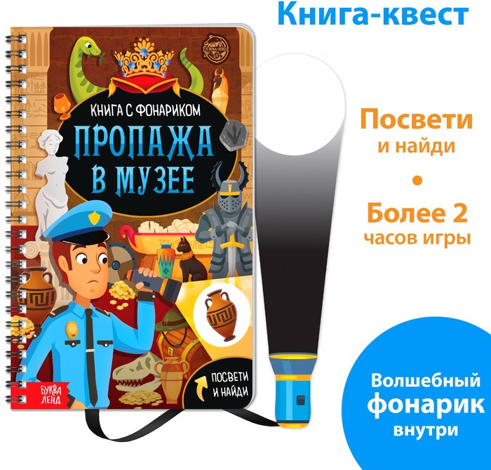 Книга-квест с фонариком «Пропажа в музее»-40% +24