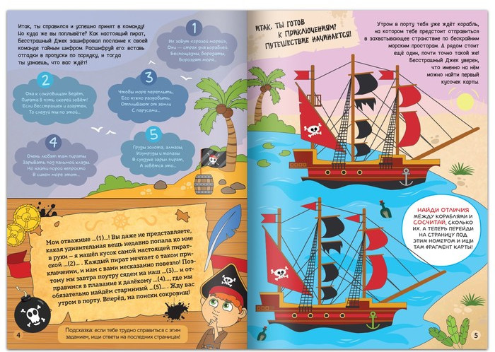 Книга-квест «Пираты в поисках сокровищ»В данный момент этот товар отсутствует в продаже. Возможно, у нас найдется аналогичный или похожий товар здесь. Книга-квест «Пираты в поисках сокровищ» поможет вам отравиться в увлекательное путешествие. Скорее присоединяйтесь к команде отважных любителей приключений! Особенности книги. Внутри вас ждут задания на рисование, раскрашивание, решение пиратских головоломок и разгадывание таинственных шифров. Книга-квест подходит детям старше 8 лет. Чем полезны книги-квесты для детей. Решая головоломки, разгадывая шифры и выполняя другие увлекательные задания, ребёнок тренирует сообразительность, умение мыслить самостоятельно, а также развивает смекалку и расширяет кругозор. |