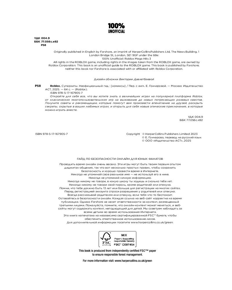 💳 Оплатить за товар можно при получении 🇰🇿 Есть бесплатная доставка по Казахстану от 1 дня 🎁 Копите бонусы с каждой покупки Серия: Roblox Откройте для себя все, что вы хотите знать о других величайших играх на популярной платформе Roblox, от классических многопользовательских игр на выживание до новых потрясающих ролевых квестов. Узнайте советы и рекомендации, которые помогут вам произвести впечатление на друзей, раскрыть секреты, скрытые в ваших любимых играх, и открыть для себя новые эпические приключения, в которые можно играть вместе. |