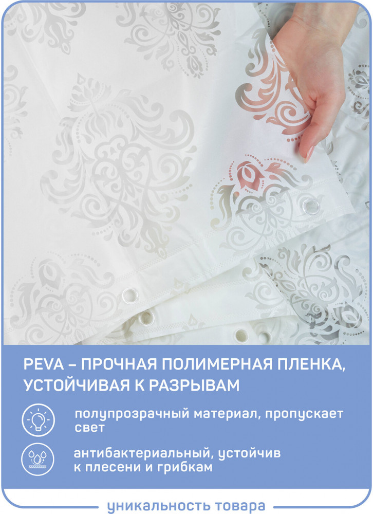 💳 Оплатить за товар можно при получении 🇰🇿 Есть бесплатная доставка по Казахстану от 1 дня 🎁 Копите бонусы с каждой покупки Штора для ванной — это не просто предмет быта, но и украшение помещения, где человек «чистит пёрышки». Потому кроме технических характеристик этого аксессуара, важны и эстетические. Штора для ванной «Флора» — одна из тех, которые украсят интерьер ванной в любом стиле. Ненавязчивый растительный орнамент на белоснежном полотне шторы выгодно подчеркнёт тёмную отделку, или будет перекликаться с позолотой, сочетаться с мотивами камня и дерева. Штора для ванной изготовлена из современного плотного материала PEVA, защищена от образования плесени и механических повреждений. Увеличенный размер позволяет закрыть всю ванную, бережёт помещение от брызг, зонирует комнату. Это красивая ширма с узорами, имитирующими классический орнамент славянских кружев и вышивок или старинных восточных росписей. Сделайте свою ванную нарядной и уютной со шторой «Флора». |