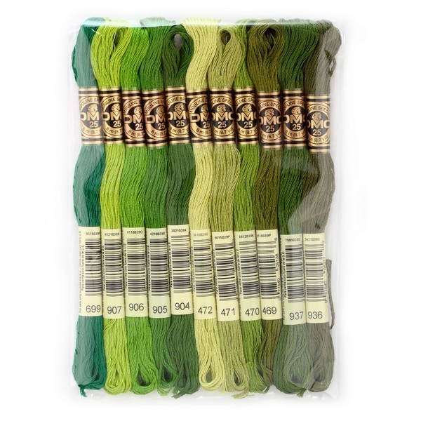 В наборе 2 мотка с несоответствующими цвету номерами: 469 и 936. (Сверяла и с мотками, которые у меня уже были ранее куплены в магазине и с каталогом ниток.) Скорее всего этикетки не с тех мотков или даже не знаю что, так как DMC в этом плане очень щепетильны: хоть 10 лет назад куплены нитки, хоть вчера - цвет должен быть одинаковый.