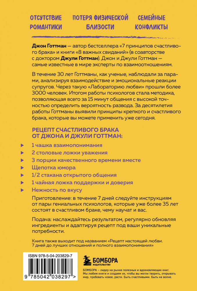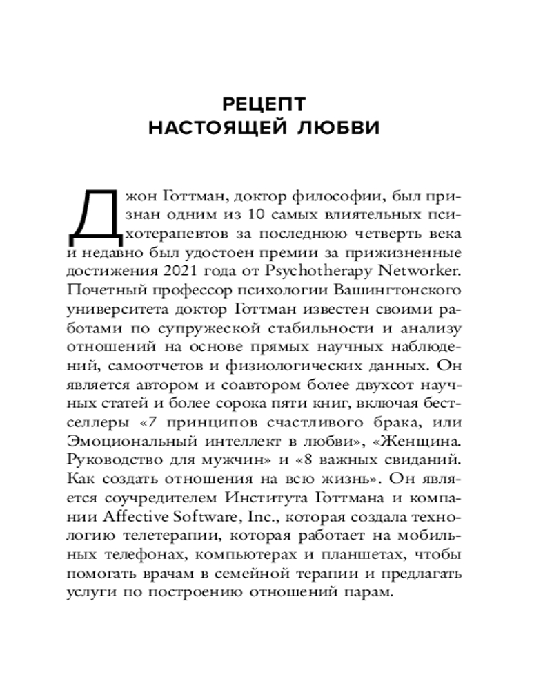 💳 Оплатить за товар можно при получении 🇰🇿 Есть бесплатная доставка по Казахстану от 1 дня 🎁 Копите бонусы с каждой покупки Серия: Карманный психолог. Готовые решения на все случаи жизни Джон Готтман — автор бестселлера «7 принципов счастливого брака» и книги «8 важных свиданий» (в соавторстве с доктором Джули Готтман). Джон и Джули Готтман — самые известные в мире эксперты по взаимоотношениям. В течение 30 лет Готтманы, как ученые, наблюдали за парами, анализируя взаимодействие и эмоциональные реакции супругов. Через такую «Лабораторию любви» прошли более 3000 человек. Итогом работы психологов стала методика, позволяющая всего за 15 минут общения с высокой точностью определить вероятность развода. За десятилетия работы Готтманы выявили принципы крепкого и счастливого брака, которые вы можете применить уже сегодня. |