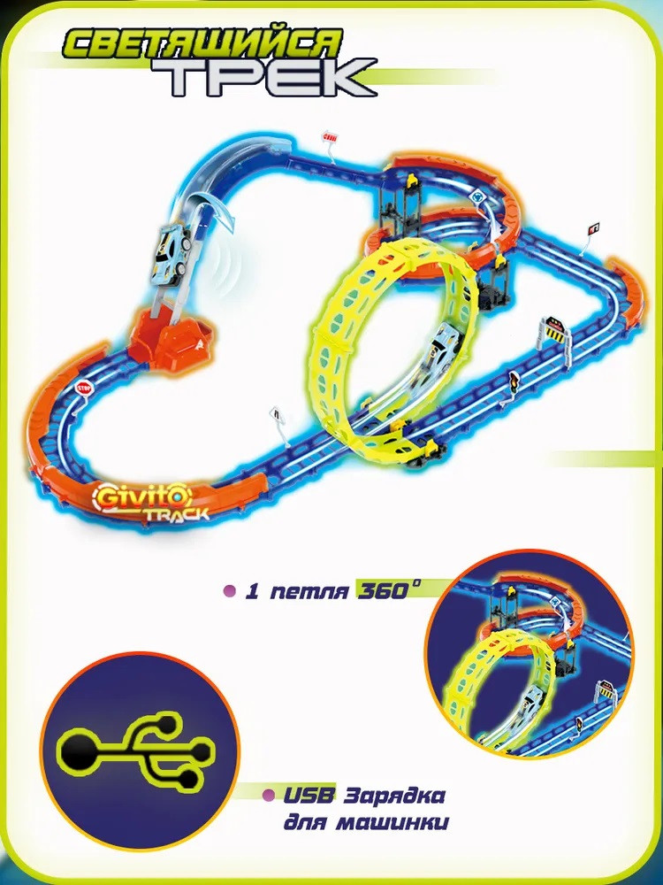 | Givito Набор игровой автотрек с машинкой-перевертышем