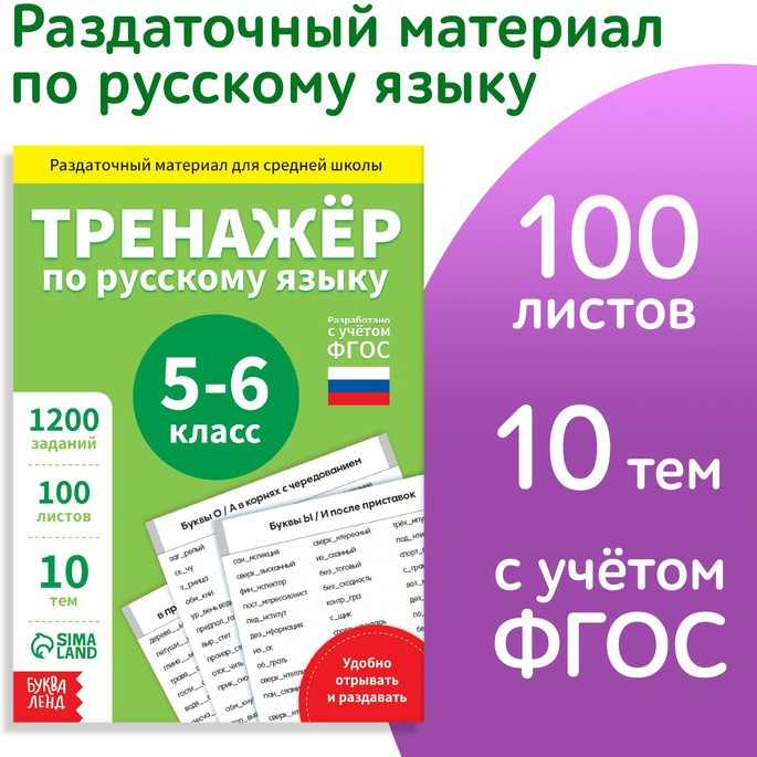 Книга обучающая «Тренажёр по русскому языку», 5-6 класс, раздаточный материал-44% +16