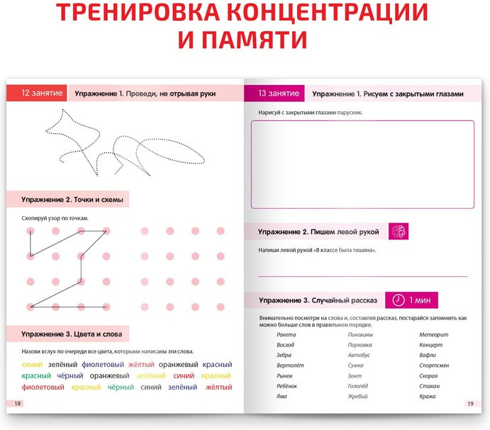 💳 Оплатить за товар можно при получении 🇰🇿 Есть бесплатная доставка по Казахстану от 1 дня 🎁 Копите бонусы с каждой покупки Скорочтение — навык, который поможет ребёнку повысить успеваемость в школе и пригодится в течение всей жизни. Он позволит ориентироваться в потоке информации, вычленяя суть, а главное — расширит возможности мозга. Чтобы успешно освоить скорочтение, важно развить концентрацию внимания, межполушарные связи и образное мышление. В этом помогут задания из рабочей тетради. |