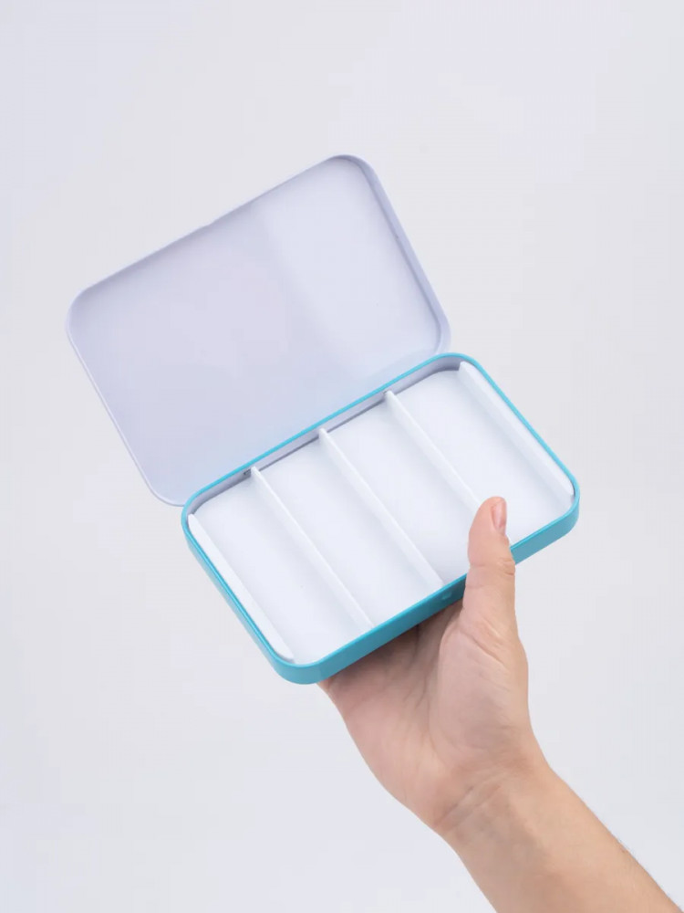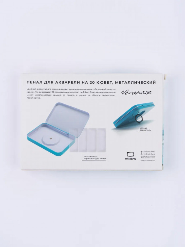Металлический пенал для акварели в кюветах приятного популярного цвета, так полюбившийся пользователям, теперь доступен отдельно. Пенал с пластиковой вставкой для 33 кювет по 2.5 мл. Составляйте свою неповторимую палитру в пенале, смешивайте новые оттенки на крышке палитре и творите с удовольствием!