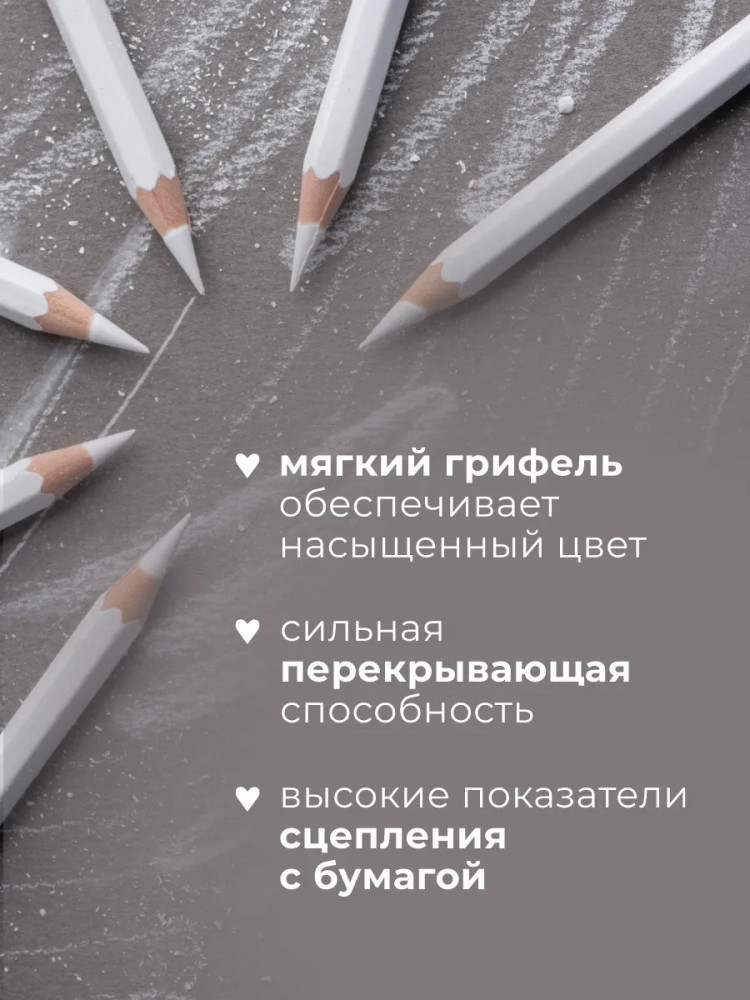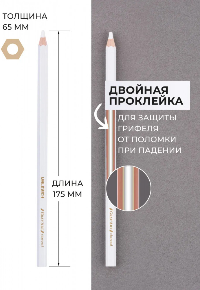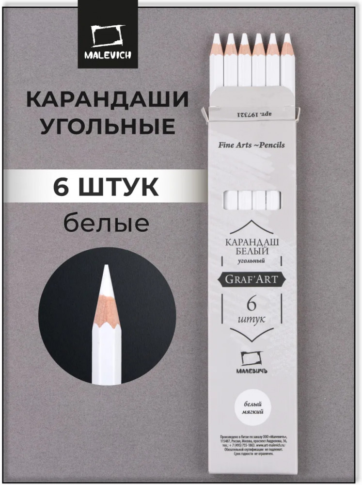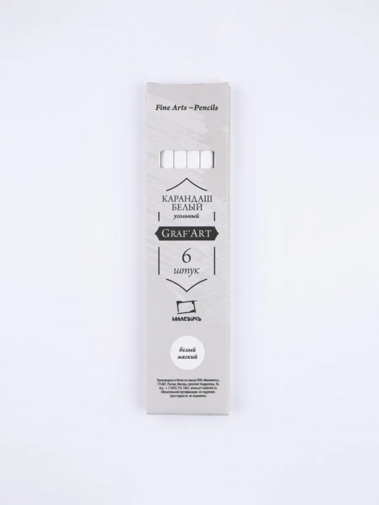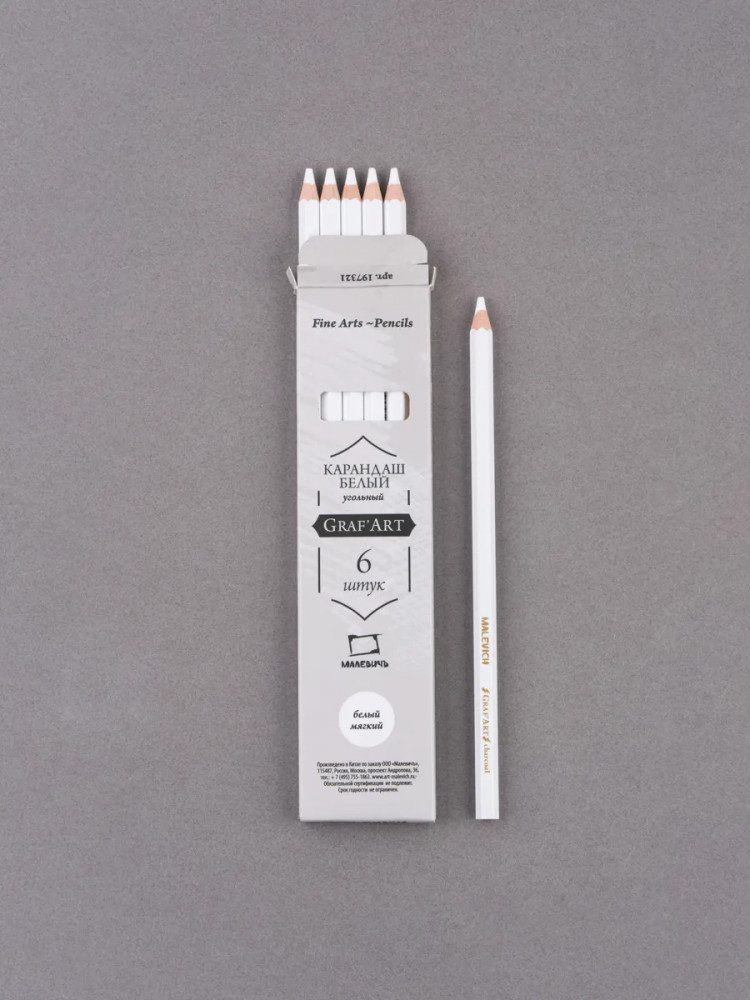 В данный момент этот товар отсутствует в продаже. Возможно, у нас найдется аналогичный или похожий товар здесь. Белый угольный карандаш Малевичъ GrafArt используется для создания светлых акцентов, бликов и выделения деталей на тёмном фоне, контуров, высветления теней. Белый уголь в карандаше может быть использован самостоятельно, оставляя ультрабелый след, но особенно эффективен для добавления ярких бликов и выделений на тёмных поверхностях, например, на тонированной бумаге или в работах, выполненных акварелью, тушью, чернилами и даже обычным графитом.