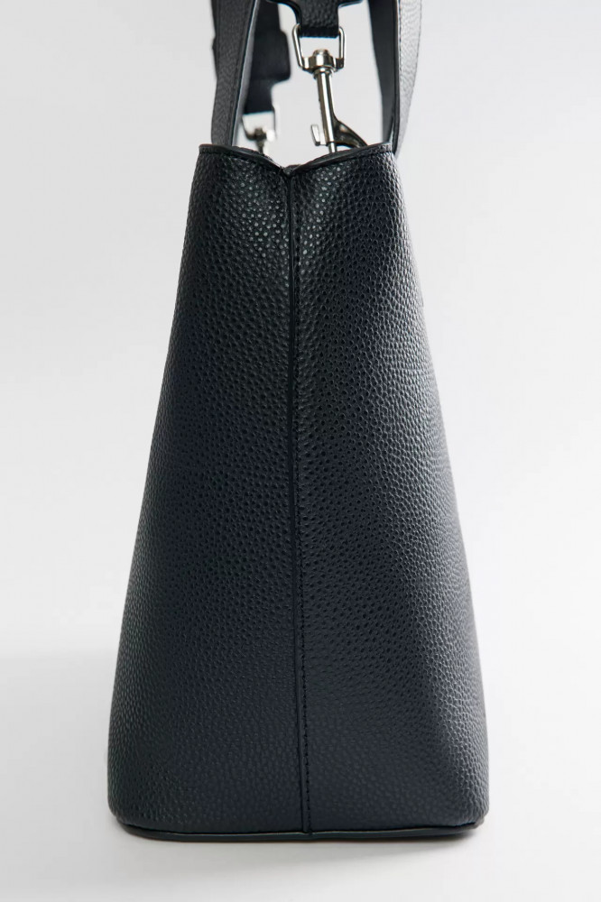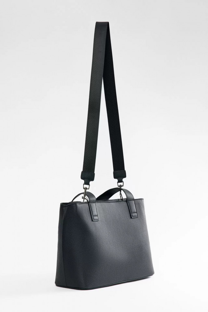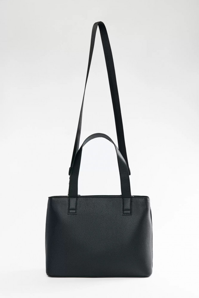 Вместительная сумка-тоут из текстурной искусственной кожи с твердым каркасом и застежкой на молнию без клапана. Два отделения, разделенные кармашком с застежкой на молнию. Внутренний карман на молнии на задней стенке. Две ручки из того же материала и широкий текстильный ремень через плечо, который пристегивается на карабины и может быть снят. Однотонная черная сумка из искусственной кожи для школы, университета или офиса. Суперудобная большая сумка с ручками и ремнем через плечо, в которую поместится все самое необходимое для учебы или работы и даже больше. Универсальная сумка-тоут из искусственной кожи в самом практичном цвете гарантированно подойдет под любой аутфит в любом стиле. Размер: 34×25×14 см.