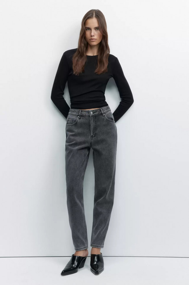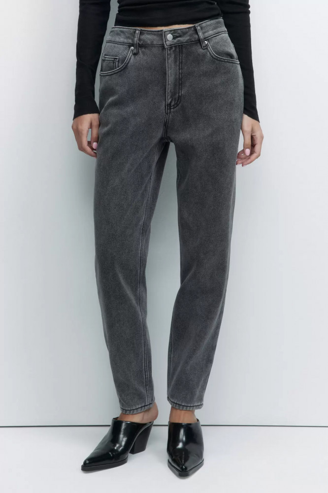 Утепленные женские джинсы мом с высокой посадкой по талии, подчеркивающей фигуру. Качественный, плотный хлопковый деним с мягкой флисовой подкладкой для защиты от мороза и ветра. Застежка на молнию и пуговицу, шлевки для ремня. Два боковых кармана с отрезным бочком, кармашек для мелочи, два накладных кармана сзади. Кожаная нашивка на поясе сзади. Металлические заклепки на карманах спереди. Темно-серые, светло-серые, черные теплые джинсы с начесом. Универсальные и удобные джинсы в самых практичных темных расцветках на все времена, с которыми можно создать множество стильных аутфитов на холодное время года. Сочетай их с любимыми футболками, рубашками или худи оверсайз для создания ультрамодных расслабленных луков на каждый день или с однотонными блузками, свитерами или жакетами для более строгих образов в школу, университет или офис. Теплые джинсы с флисом – мастхэв на холодную осень и зиму и просто незаменимый элемент твоего повседневного гардероба. Размер на модели: S. Параметры модели: рост 176, бюст 82, талия 61, бедра 89.
