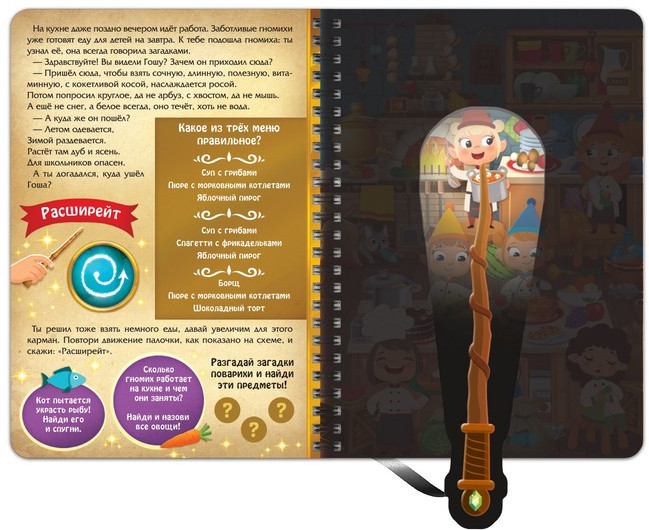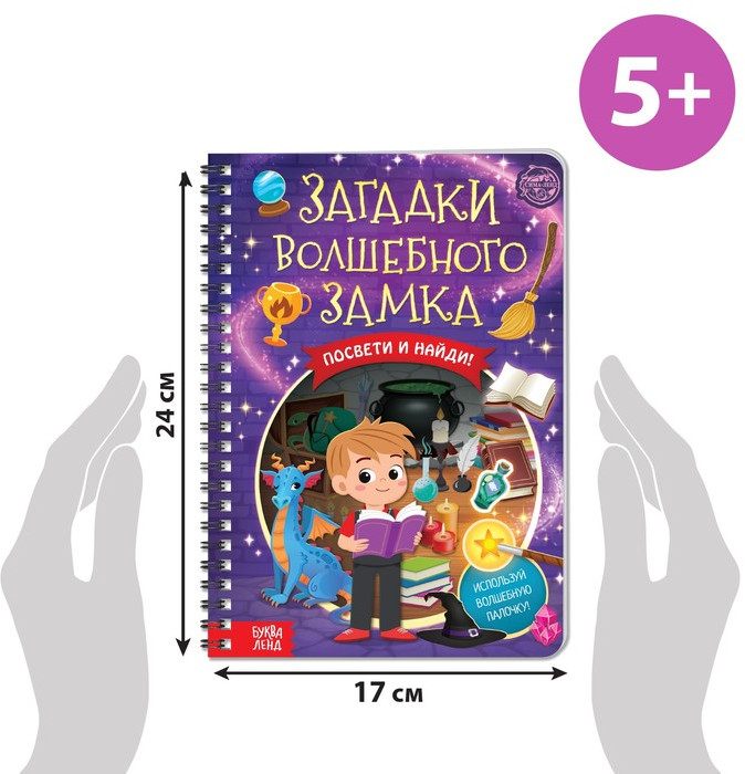 Книга-квест с фонариком «Загадки волшебного замка»В данный момент этот товар отсутствует в продаже. Возможно, у нас найдется аналогичный или похожий товар здесь. Добро пожаловать в школу волшебства! Вас ждёт удивительное приключение, полное секретов и загадок. Сможете ли вы разгадать все тайны замка и спасти своего лучшего друга? Как разглядеть предметы на чёрных страницах книжки? Возьмите волшебную палочку и вложите её между пластиковой и чёрной страницами. Вы получите яркое изображение на пластиковой странице, где размещаете белую часть палочки (луч).Остальные части страницы (не под палочкой) остаются в тени. Секретная книга с волшебной палочкой привлекает внимание ребёнка своей необычной задумкой. Рекомендовано для детей от 5 лет. |