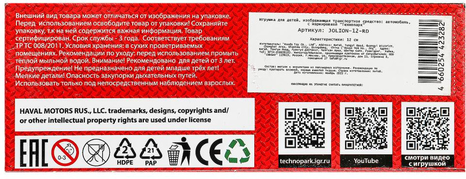 Технопарк Машина инерционная «Haval Jolion»