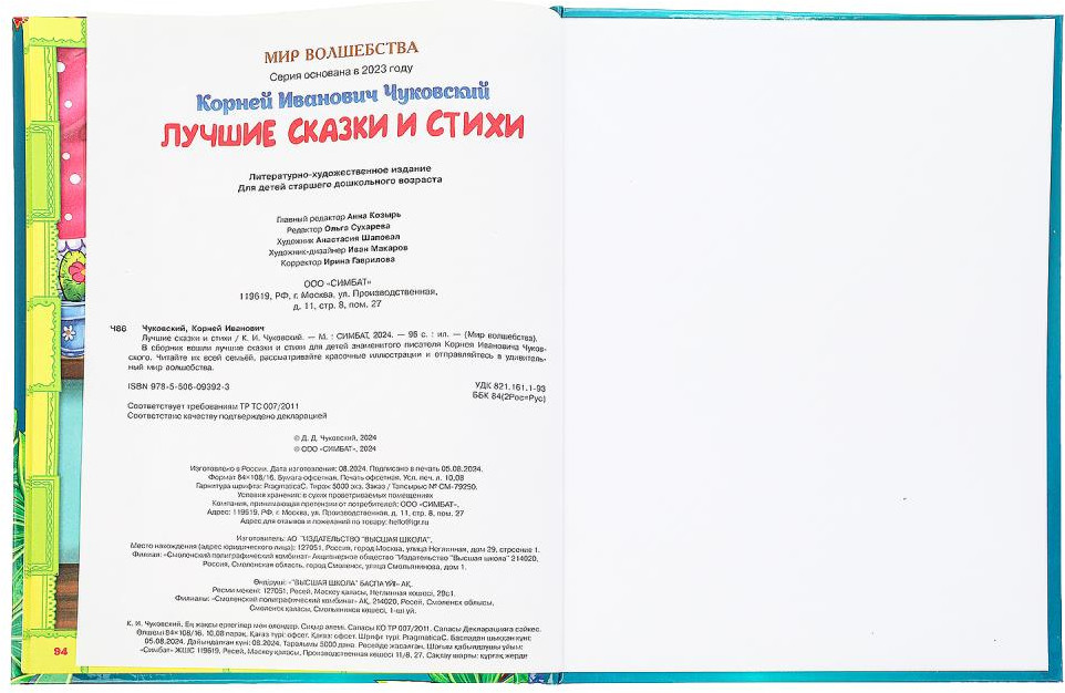💳 Оплатить за товар можно при получении 🇰🇿 Есть бесплатная доставка по Казахстану от 1 дня 🎁 Копите бонусы с каждой покупки Серия: Мир волшебства Книга «К. И. Чуковский. Лучшие сказки и стихи» из серии «Мир волшебства» ТМ «УМка» — отличный вариант для увлекательного чтения. Яркий сборник известных произведений Корнея Ивановича Чуковского, в которой вошли всеми любимые сказки и стихи автора, займёт достойное место в библиотеке вашего ребёнка. Красочные картинки и интересные тексты обязательно заинтересуют малыша и привьют ему любовь к чтению с ранних лет. Рекомендовано детям старшего дошкольного возраста. |