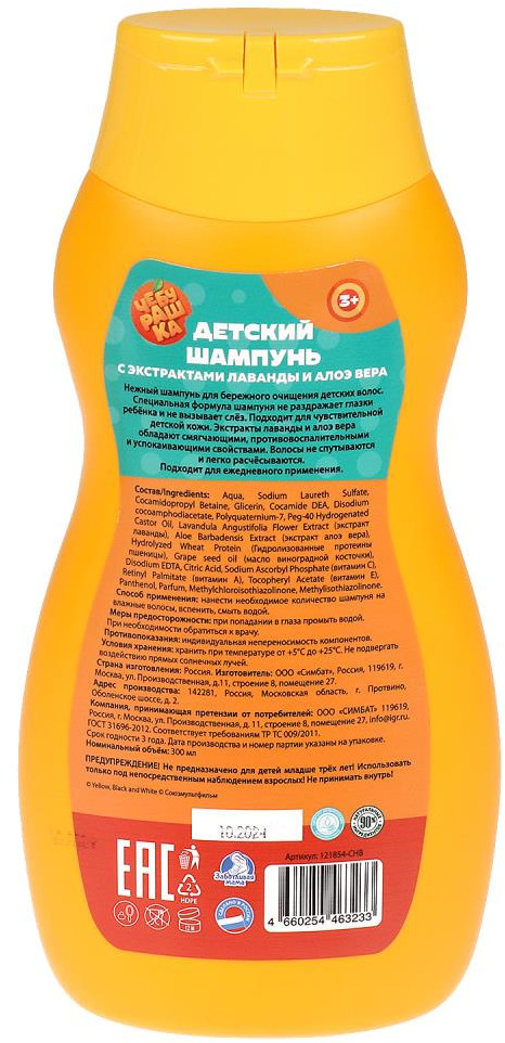 💳 Оплатить за товар можно при получении 🇰🇿 Есть бесплатная доставка по Казахстану от 1 дня 🎁 Копите бонусы с каждой покупки Серия: Чебурашка Этот шампунь создан специально для бережного очищения детской кожи головы и волос. Формула без слёз защищает глазки малыша от раздражения. Подходит для чувствительной детской кожи. Витаминный комплекс и натуральные экстракты лаванды и алоэ вера оказывают успокаивающее и противовоспалительное действие, питают и увлажняют кожу. Волосы не спутываются и легко расчёсываются. Подходит для ежедневного применения. |