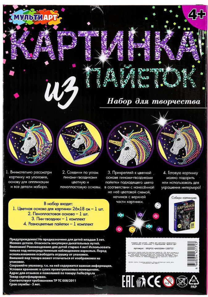 Multi Art Картина из пайеток «Единорог»-35% +86