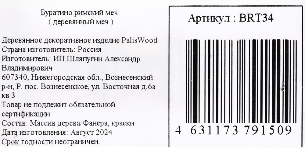 Буратино Деревянное декоративное изделие «Меч»В данный момент этот товар отсутствует в продаже. Возможно, у нас найдется аналогичный или похожий товар здесь. Деревянное декоративное (сувенирное) изделие «Меч» ТМ «Буратино» непременно понравится маленькому герою: |