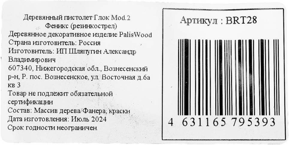 Буратино Деревянное декоративное изделие «Пистолет»-35% +78