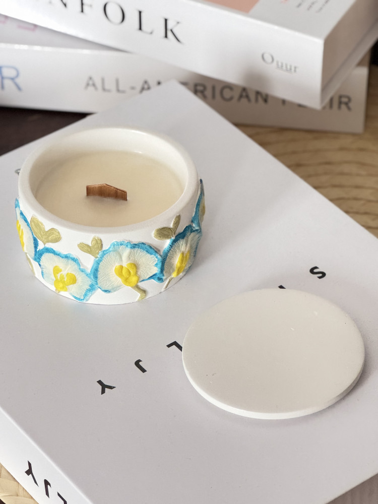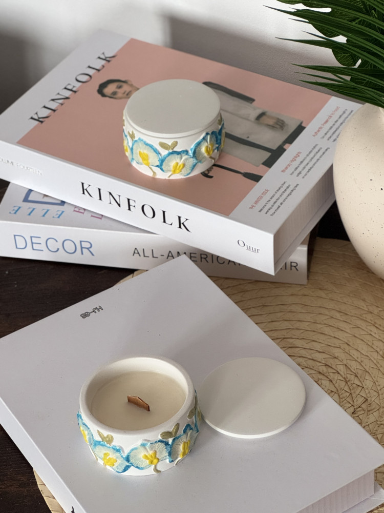 скульптурный гипс, соевый воск, ароматическая эссенция