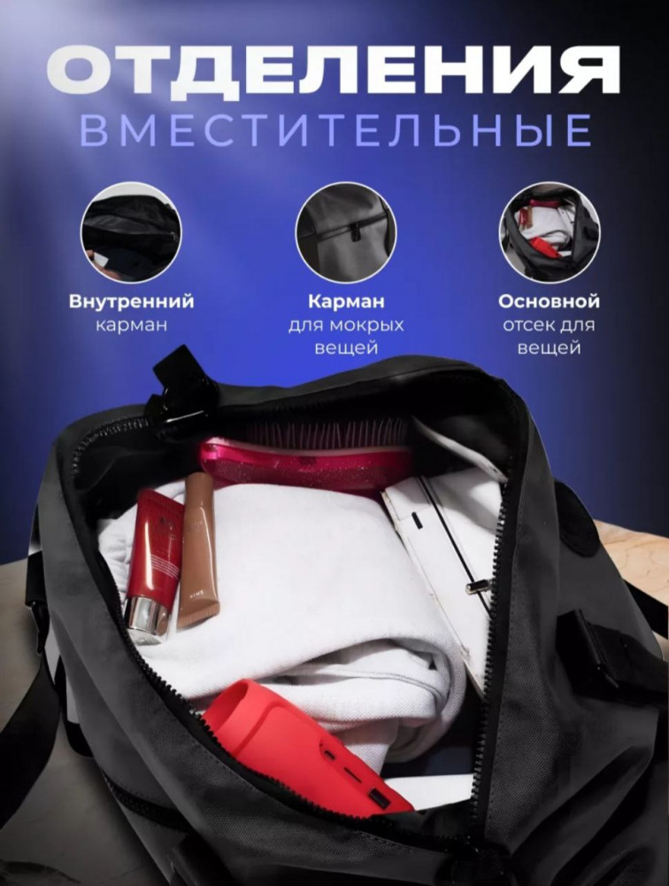 Усиленные ручки обеспечивают комфортную переноску, а универсальный дизайн позволяет носить её как рюкзак через плечо. Вместительное основное отделение и удобные карманы позволяют легко разместить одежду, обувь и спортивные аксессуары. Эта сумка станет идеальным выбором не только для спортзала и бассейна, но и для путешествий или туристических поездок. Лёгкая, прочная и функциональная, она поможет организовать всё необходимое для спорта и активного отдыха, даря комфорт и удобство в любой ситуации