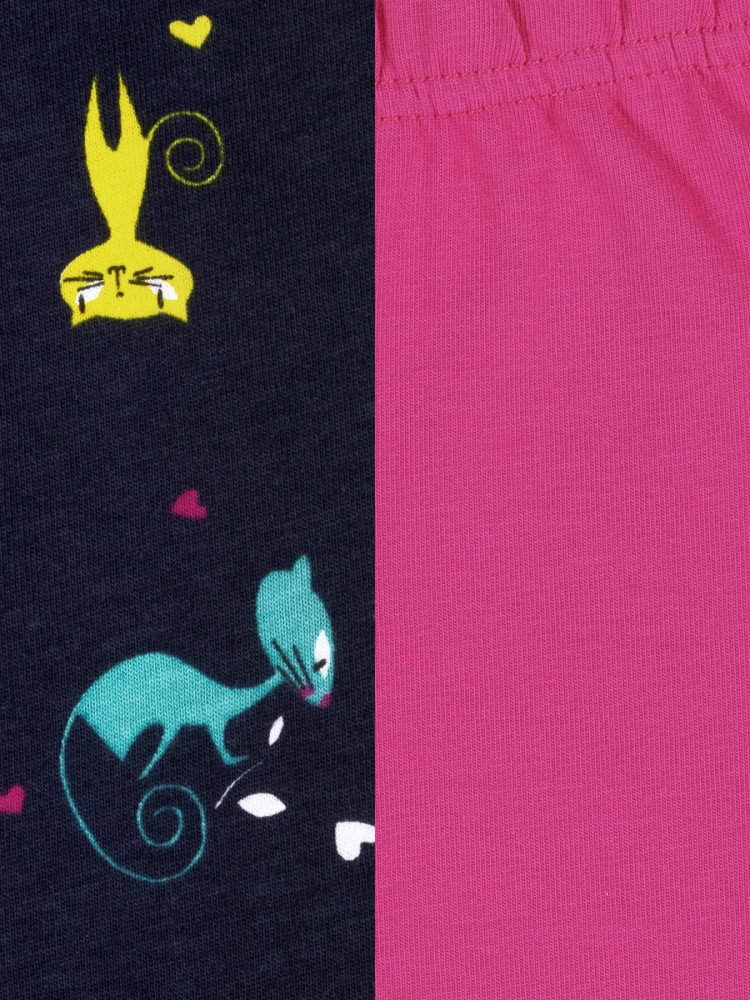 Название цвета: ярко-розовый12+разноцветные кошки на темно-синем