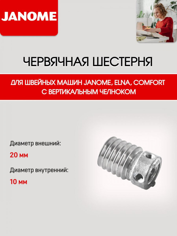 Червячная шестерня (червячная передача) 751146101 (751146008) на главный (верхний) вал под программным блоком (копиром) для бытовых машин с вертикальным челноком: Dragonfly (Драгонфлай), Comfort (Комфорт), Janome, Elna. На последнем фото обозначено расположение шестерни на валу. Внутренний диаметр — 10 мм.