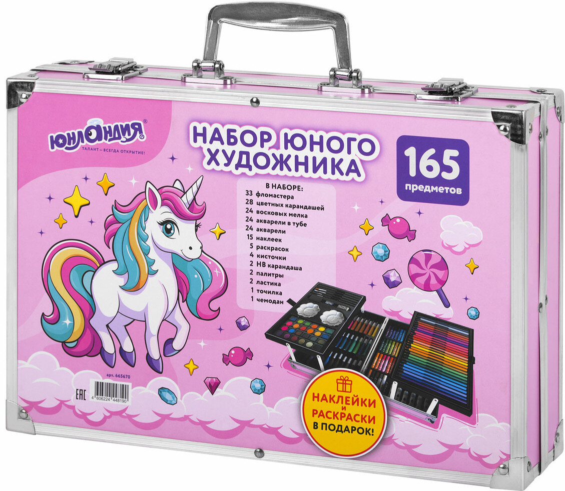 💳 Оплатить за товар можно при получении 🇰🇿 Есть бесплатная доставка по Казахстану от 1 дня 🎁 Копите бонусы с каждой покупки Набор юного художника Юнландия отлично подойдет для первых шагов в рисовании. В красочном кейсе есть все самые необходимые предметы для развития творческих способностей ребенка. Набор хорошо развивает усидчивость, воображение, образное мышление. |