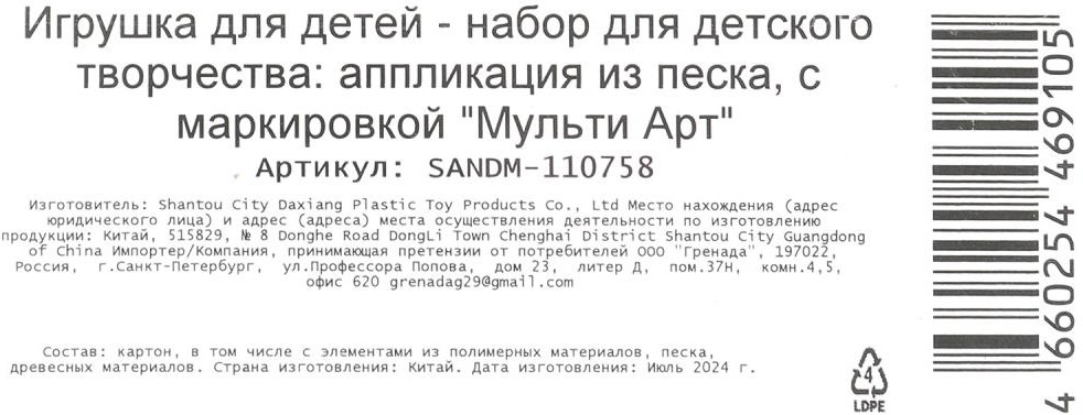💳 Оплатить за товар можно при получении 🇰🇿 Есть бесплатная доставка по Казахстану от 1 дня 🎁 Копите бонусы с каждой покупки Серия: Сказочная мастерская Набор для творчества — аппликация из песка «Спайдер» из серии «Сказочная мастерская» ТМ «Мульти Арт» — отличный подарок для ребёнка, который будет способствовать развитию его творческих способностей. |