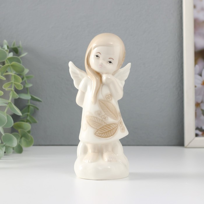Сувенир «Девочка-ангел в платье с листиками на облаке думает»-25%