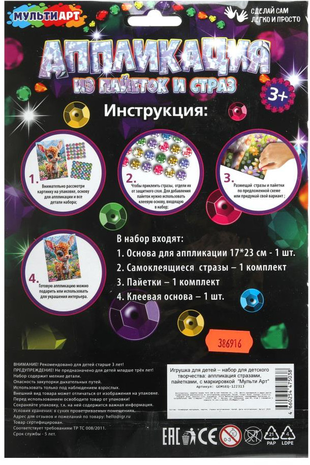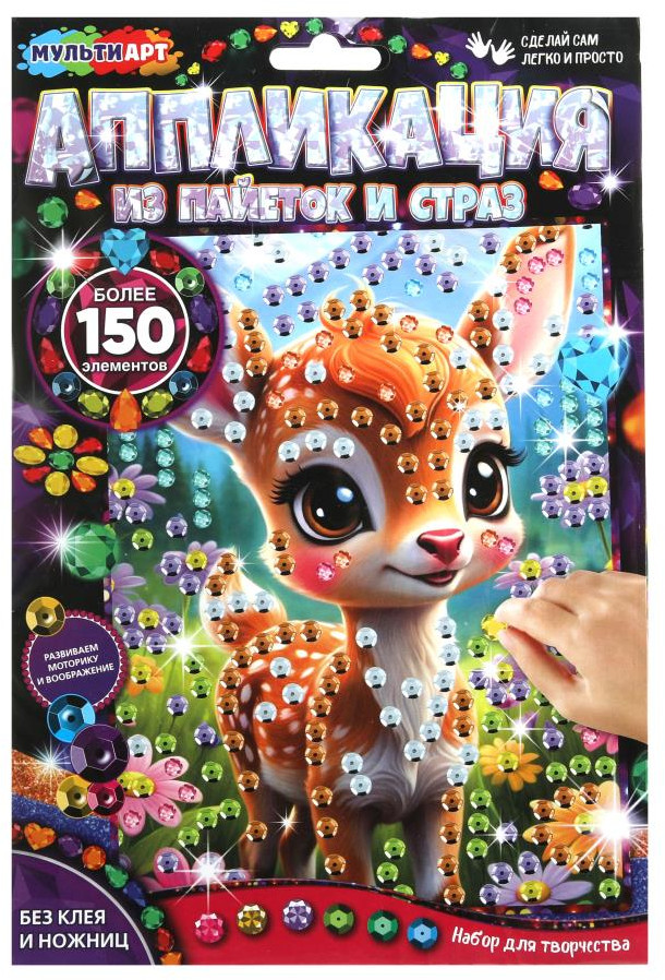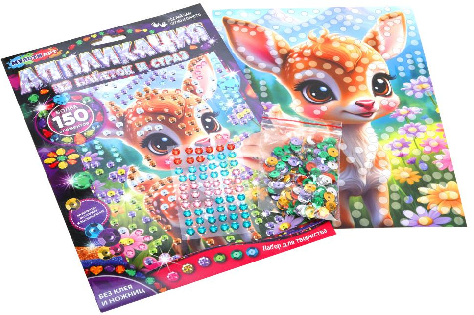 Multi Art Аппликация из пайеток и страз «Олененок»В данный момент этот товар отсутствует в продаже. Возможно, у нас найдется аналогичный или похожий товар здесь. Набор для творчества — аппликация из пайеток и страз «Милый оленёнок» ТМ «Мульти Арт» — отличный подарок для вашего ребёнка, который будет способствовать развитию его творческих способностей. |
