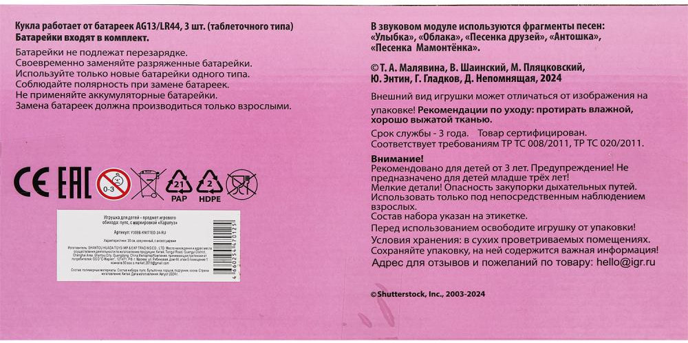 💳 Оплатить за товар можно при получении 🇰🇿 Есть бесплатная доставка по Казахстану от 1 дня 🎁 Копите бонусы с каждой покупки Озвученный пупс «Анечка» ТМ «Карапуз» станет прекрасным подарком для девочки. Этот милый пупс обязательно понравится вашей малышке. Анечка одета в пёстрый вязаный костюмчик, на голове — шапочка в тон с забавными ушками. Одежда легко надевается и снимается. С такой куколкой девочка может играть в самые разные игры, гулять с ней, петь песни, кормить, переодевать, рассказывать сказки и укладывать спать. |