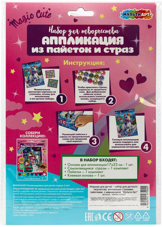 Multi Art Аппликация из пайеток и страз «Единорог»-35% +12