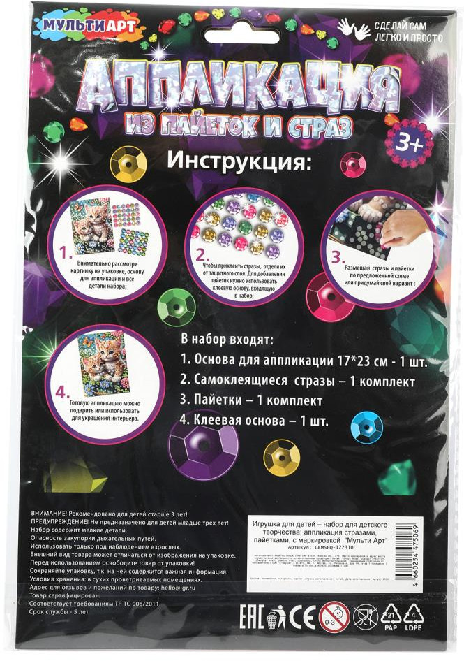Multi Art Аппликация из пайеток и страз «Котята в корзинке»-35% +12