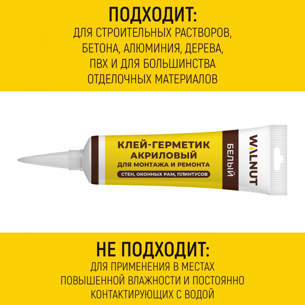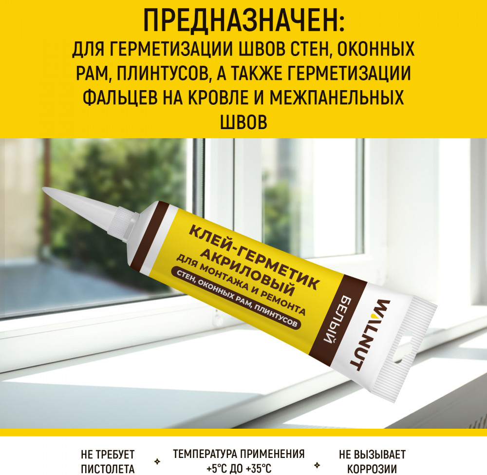 Монтажный герметик на основе акрила является отличным решением для герметизации швов и стыков стен, потолочных и настенных плиток, ПВХ и ДСП панелей, подоконников окон, оконных рам и плинтусов в деревянном и панельном доме. Он подходит для фальцевых соединений на кровле и межпанельных швов, обеспечивая надежное и долговечное уплотнение. Материал используется для внутренних работ с бетонными, металлическими, пластиковыми и другими поверхностями, что делает его универсальным и удобным в использовании. К примеру, на строительных растворах или бетоне, алюминиевых поверхностях, дереве, стекле или пластике. Однако, стоит учесть, что средство не подходит для отделки мест с повышенной влажностью, таких как кухня, ванная комната и туалет, а также покрытий, контактирующих с водой. Преимущество белого герметика — возможность его окрашивания, что позволяет гармонично вписать материал в интерьер. Кроме того, водостойкий продукт не вызывает коррозии металлов, что обеспечивает безопасность и долговечность поверхностей от появления ржавчины. В основе специального состава отделочного материала лежит акриловая эмульсия, обеспечивающая высокие эксплуатационные характеристики, такие как прочность, эластичность, устойчивость к атмосферным воздействиям и долговечность.
