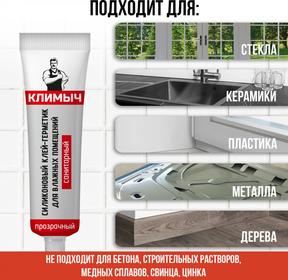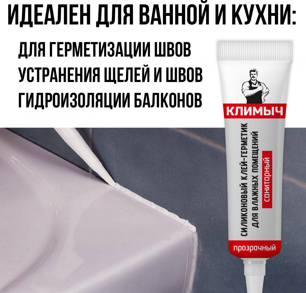 Универсальный однокомпонентный герметик разработан специально для обработки стыков и швов в помещениях с повышенной влажностью — в ванных комнатах и кухнях. В его основе высококачественные силиконовые смолы и кремнийсодержащие добавки, которые обеспечивают превосходные адгезионные свойства к большинству типов поверхностей — стеклу, пластику, керамике, металлу или дереву. Силикон используется во всех областях, где требуется уплотнение или герметизация. Например, для заполнения соединений стеновых панелей или кухонного фартука со столешницей, стыков раковины и стола, в ванной комнате или душевых кабинах, прокладкой для сантехники Так же при отделке мебели или установке деревянных или пластиковых окон, оконных рам и дверей. Многофункциональный уплотнитель используется для заполнения швов между керамической или кафельной плиткой, стеновыми ПВХ панелями и пола, а также в стекольных работах.