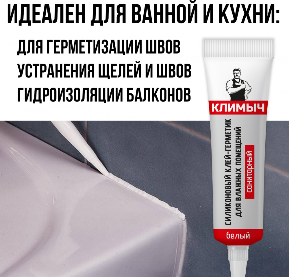 Универсальный однокомпонентный герметик разработан специально для обработки стыков и швов в помещениях с повышенной влажностью — в ванных комнатах и кухнях. В его основе высококачественные силиконовые смолы и кремнийсодержащие добавки, которые обеспечивают превосходные адгезионные свойства к большинству типов поверхностей — стеклу, пластику, керамике, металлу или дереву. Силикон используется во всех областях, где требуется уплотнение или герметизация. Например, для заполнения соединений стеновых панелей или кухонного фартука со столешницей, стыков раковины и стола, в ванной комнате или душевых кабинах, прокладкой для сантехники Так же при отделке мебели или установке деревянных или пластиковых окон, оконных рам и дверей. Многофункциональный уплотнитель используется для заполнения швов между керамической или кафельной плиткой, стеновыми ПВХ панелями и пола, а также в стекольных работах.
