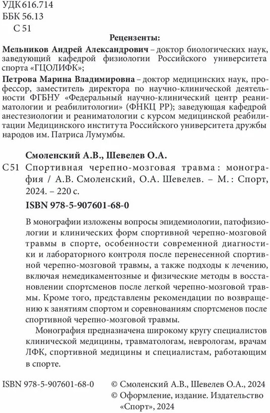 Спортивная черепно-мозговая травмаАндрей Вадимович Смоленский, Олег Алексеевич Шевелев -70% +36