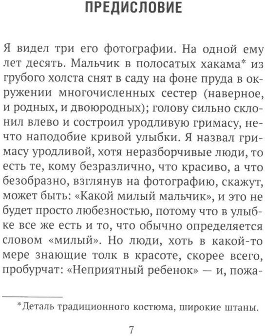 Избранные произведения. Исповедь «неполноценного» человека. Комплект из 2 книгВ данный момент этот товар отсутствует в продаже. Возможно, у нас найдется аналогичный или похожий товар здесь. Дадзая Осаму «Избранные произведения» вошли повести, рассказы, сказки. Повесть «Закатное солнце»; рассказы «Жена Вийона»; «Одежда из рыбьей чешуи»... Дадзай Осаму (настоящее имя писателя — Цусима Сюдзи) родился 19 июня 1909 года в маленьком городке Канаги на самом севере Хонсю. Его отец Цусима Гэнъуэмон, был одним из самых богатых и влиятельных в округе землевладельцев, активным политическим деятелем. Мать, Танэ, часто болела, и дети, а их в семье было одиннадцать (Сюдзи был десятым), воспитывались няньками и многочисленными тетушками-приживалками. «Мой отец был человек занятой и почти не бывал дома. А если и бывал, то с детьми не общался. Я его боялся», — писал впоследствии Дадзай в автобиографической повести «Воспоминания» («Омоидэ»). В большом богатом доме Цусима строго соблюдались старые феодальные порядки. Дети воспитывались в соответствии с традиционными представлениями о семейной гордости и чести. «Я твердо усвоил, что лучше умереть, чем позволить оскорбить себя» — вспоминал Дадзай. Он был младшим сыном, с которым особенно никто не считался, поэтому с малых лет привык ощущать себя «лишним». Самым близким ему человеком была няня Такэ, взятая в дом четырнадцатилетней девочкой. Она учила мальчика читать, водила его на деревенские праздники. Его привлекала красота старинных магических обрядов, которые были еще живы в этом диком северном краю. Суровые зимние вечера он проводил с няней у очага: она рассказывала ему сказки. Дадзая удручала суровая и сумрачная атмосфера родного дома. Чувствуя себя одиноким, он все больше и больше замыкался в своем собственном мире. Потому что общество других людей пугало, казалось враждебным. Но, тем не менее, старательно избегая его, он одновременно страдал от своего одиночества, от своей непохожести на других. Ему страстно хотелось быть таким, как все, жить так, как живут все. |
