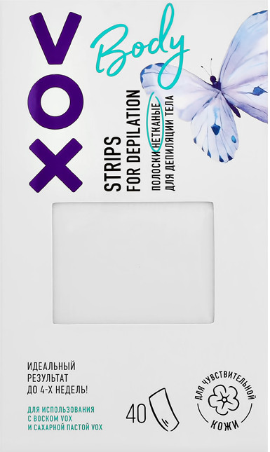 Нетканые полоски для депиляции VOX созданы для удаления волос в домашних условиях. Полоски изготовлены из высококачественного нетканого материала, обладающего уникальными физическими и механическими характеристиками. Это позволяет полоске не растягиваться во время депиляции, а также делает процедуру еще более комфортной и безболезненной.