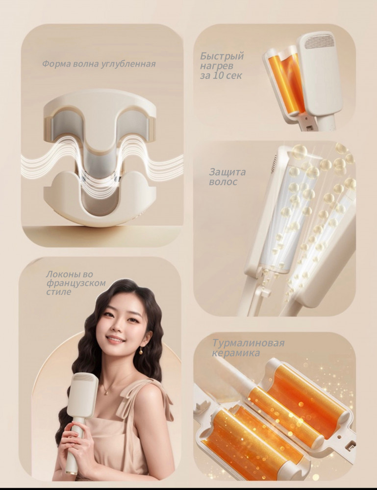 Волнообразный утюжок для создания локонов во французском стиле. Придайте своим локонам элегантную естественность с помощью стильного волнообразного утюжка. Он позволяет создавать мягкие, объемные волны в утончённом французском стиле, подчёркивая вашу естественную красоту.