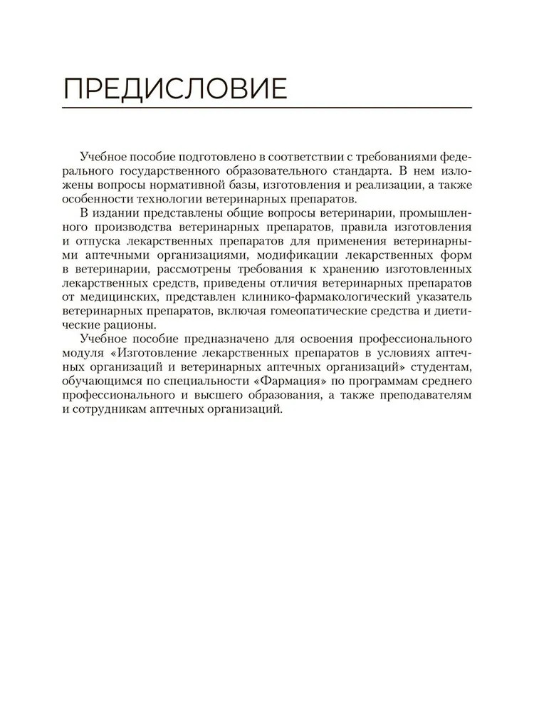 💳 Оплатить за товар можно при получении 🇰🇿 Есть бесплатная доставка по Казахстану от 1 дня 🎁 Копите бонусы с каждой покупки В учебном пособии представлен систематизированный материал по технологии изготовления лекарственных препаратов аптечного и промышленного производства. Приведены основные термины и понятия, используемые в технологии твердых, жидких, плотных и мягких лекарственных форм и дана их характеристика. Включена информация о лекарственных препаратах, применяемых в современной ветеринарной практике. Учебное пособие предназначено обучающимся по программе среднего профессионального образования по специальности «Фармация». |