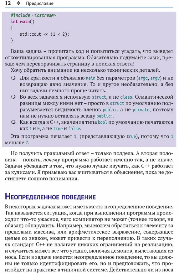 💳 Оплатить за товар можно при получении 🇰🇿 Есть бесплатная доставка по Казахстану от 1 дня 🎁 Копите бонусы с каждой покупки C++ — язык программирования с долгой историей и на первый взгляд непредсказуемым поведением. 25 задач помогут вам исследовать наиболее интересные его «причуды». В процессе решения за кажущейся сложностью языка вы разглядите и сможете понять фундаментальные основы его работы. |