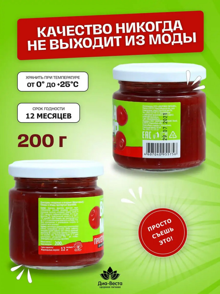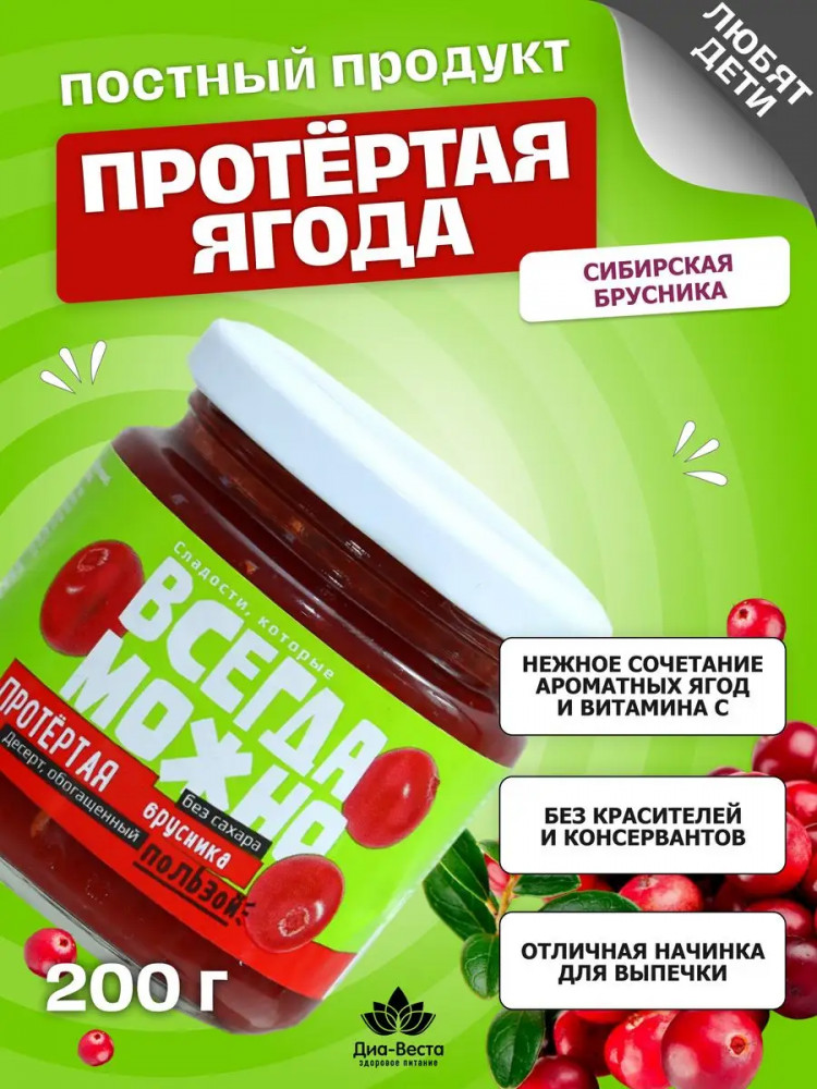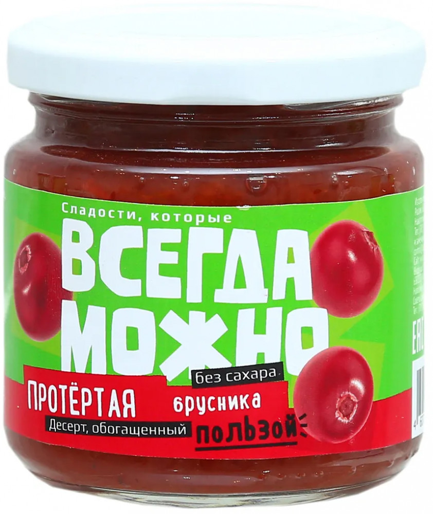 Всегда можно Ягода протертая без сахара на фруктозе «Брусника»