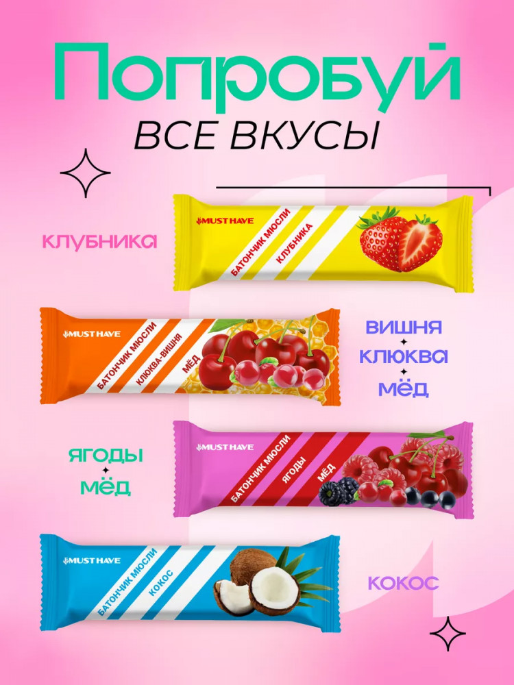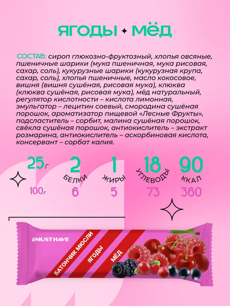 Must Have Батончик-мюсли злаковый «Ягоды и мед»