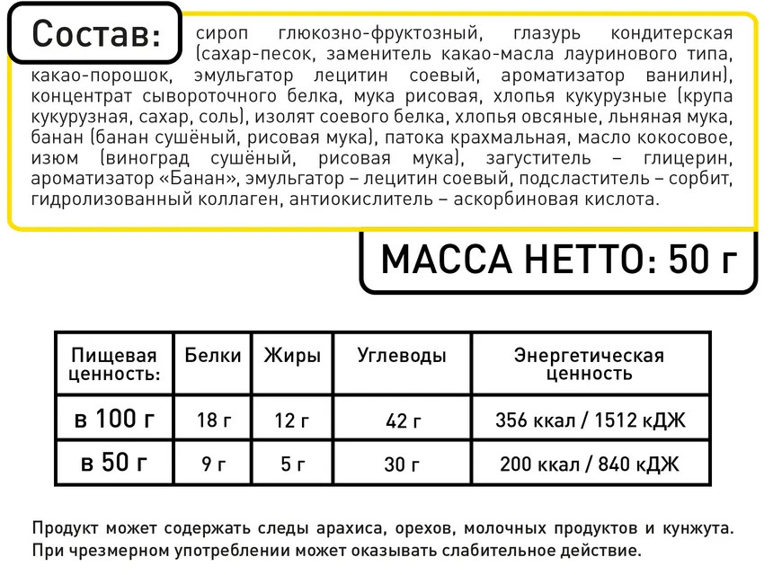 • натуральные ингредиенты: банан, овсяные хлопья и другие натуральные компоненты делают эти батончики не только вкусными, но и полезными;
