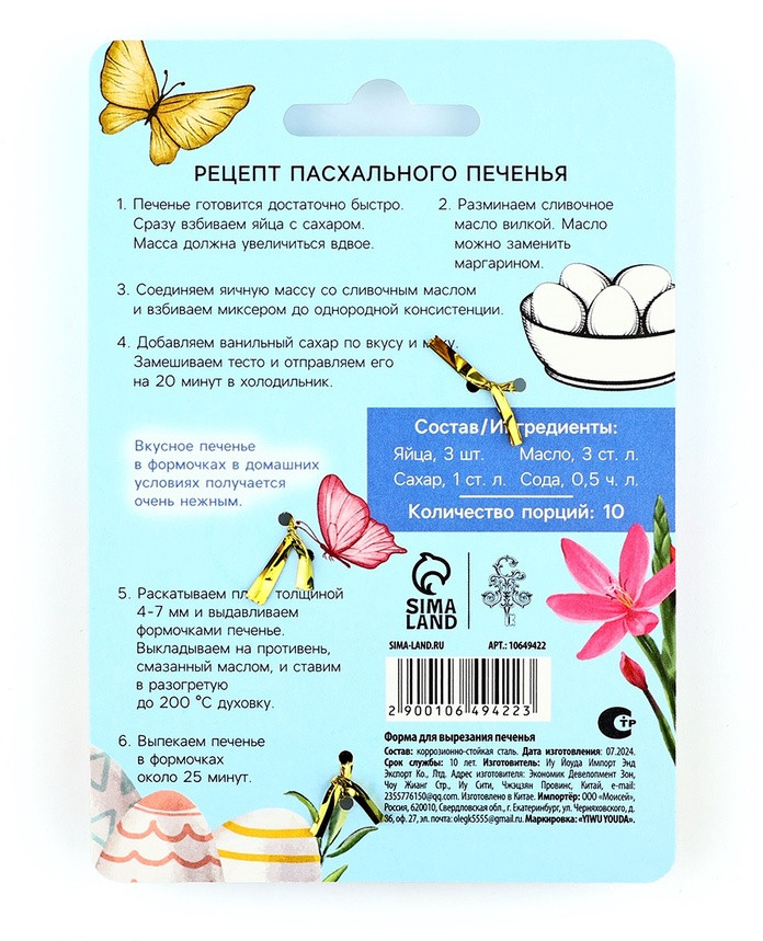 Sima-Land Home Форма для вырезания печенья «Светлой Пасхи!»В данный момент этот товар отсутствует в продаже. Возможно, у нас найдется аналогичный или похожий товар здесь. Порадуйте себя и своих близких домашним печеньем без лишних хлопот! Наша форма для вырезания печенья – это удобный и прочный инструмент, который поможет создать аккуратные и красивые фигурки всего за несколько секунд. Идеально для праздников, детских вечеринок и уютных семейных вечеров. |